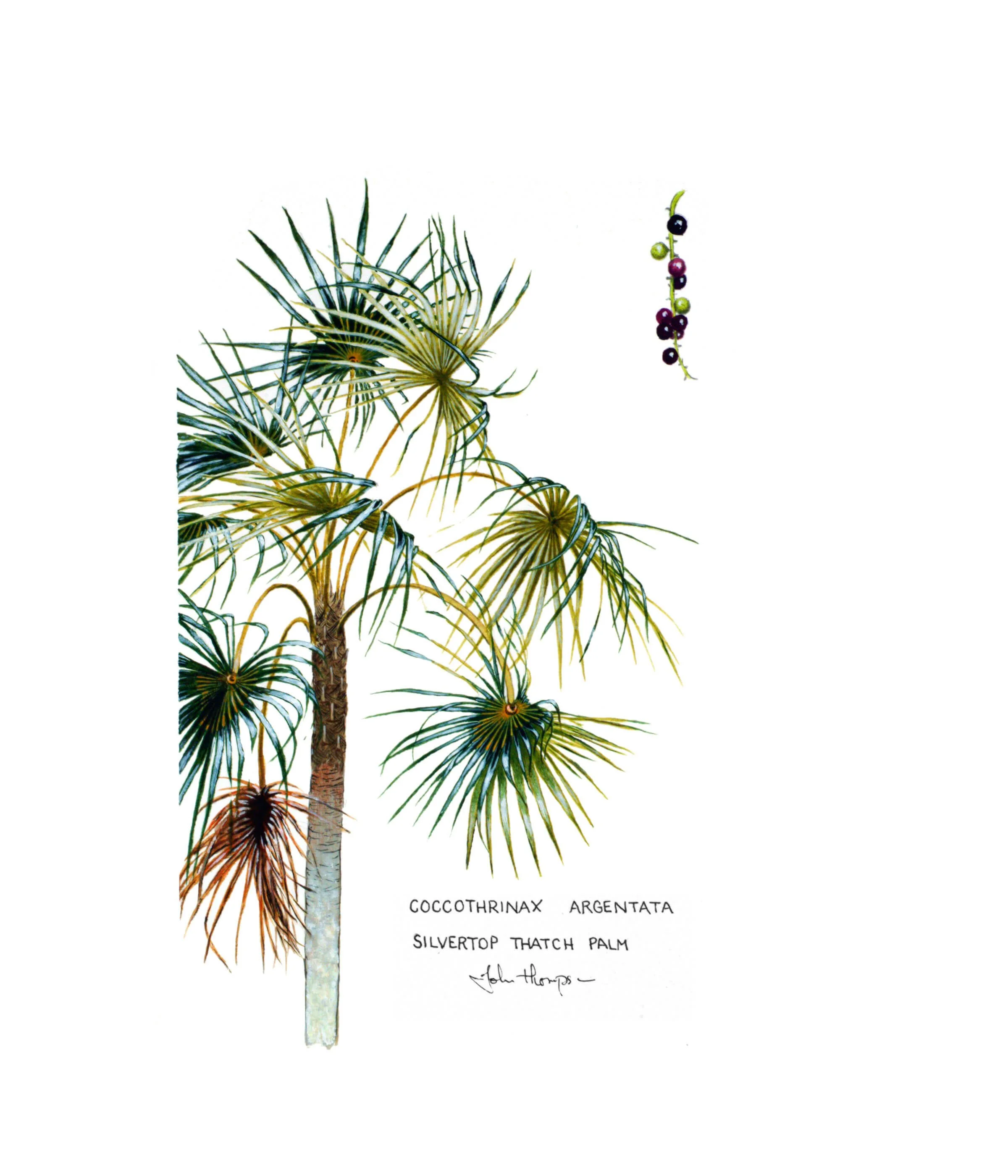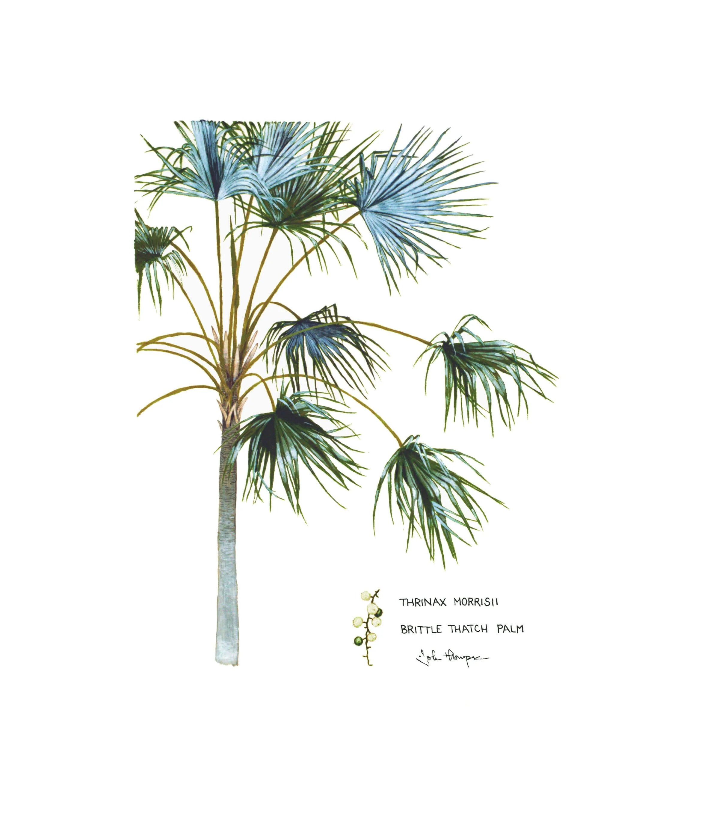Illustration of Thrinax morrisii, Brittle Thatch Palm, with botanical details.